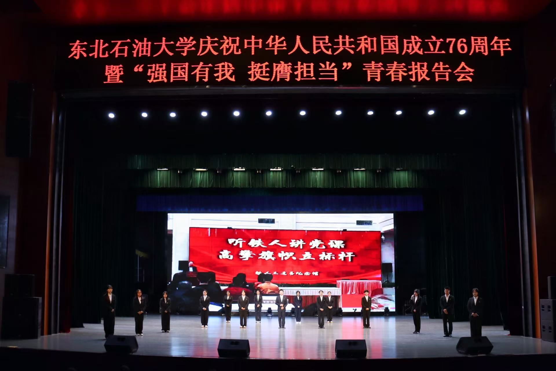 (图/文 杨宾 记者 杨雨剑)为庆祝中华人民共和国成立76周年,深入学习贯彻习近平新时代中国特色社会主义思想,激励青年学子增强服务国家战略、投身民族复兴的责任感与使命感,9月26日,我校举行庆祝中华人民共和国成立76周年暨“强国有我,挺膺担当”青春报告会。教务处、大庆精神教育研究中心、校团委、各二级学院相关负责人出席。